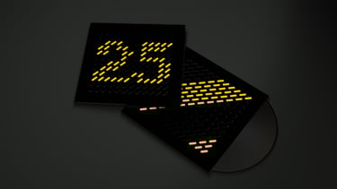 Cette pochette de disque est inspirée du designer graphique Peter Saville. Il vient commémorer les 25 ans de carrière du Designer au sein de la Factory record.