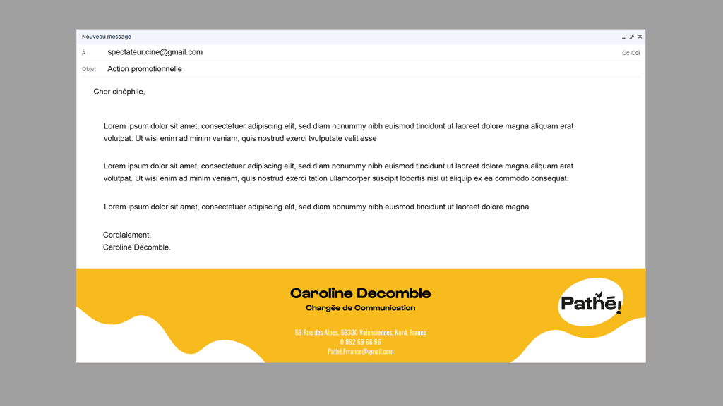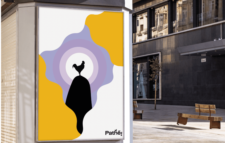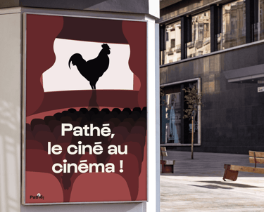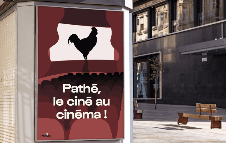 Ces affiches originales inspirées des formes arrondies de la refonte du logotype, présente le coq symbolique de "Pathé". Le coq est présenté sur un écran de cinéma et invite les spectateurs à vivre l'expérience du cinéma sur grand écran.