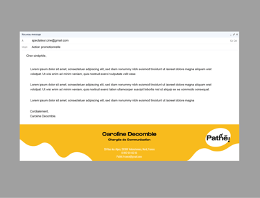Cette refonte inspirée de l'histoire et symboles de la marque, remet au goût du jour l'identité visuel de Pathé par des formes arrondies et épurées. Moderne et fidèle à ses origines, un coq revisité prend place sur son perchoir mis en abyme par un "halo" rappelant les introductions cinématographiques des années 20.
